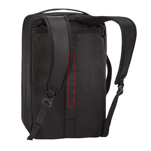 Uno borsa ecologica 2 in 1 che si trasforma in uno zaino per i viaggi d'affari. Presenta tasche dedicate per un MacBook® da 16" o un PC da 15,6" e un tablet da 10,5". Ha numerose tasche interne per tenere al sicuro gli oggetti, sia come valigetta che come zaino, e una tracolla imbottita rimovibile per trasportarlo comodamente. Realizzato in poliestere 1680 riciclato al 100% e cerniere YKK.