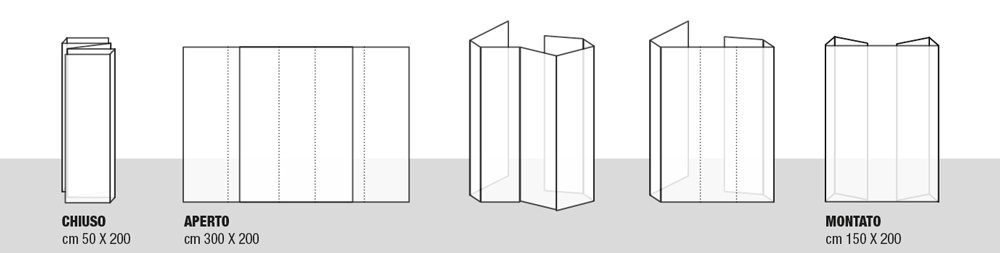 Adesivo applicato su pannello in POLIONDA spessore 5 mm. Autoportante e pieghevole. Chiuso ha le dimensioni di cm 50x200, potrai così riporlo comodamente. Una volta aperto e montato diventa un pratico paravento di cm 150x200.