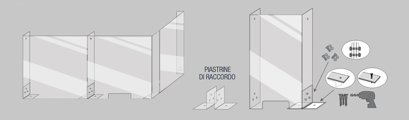 Le nostre protezioni in plexiglass modulari possono essere montate su banconi molto lunghi senza disturbare l’armonia del vostro ambiente. Si installano in modo semplice con biadesivo e sono già predisposte con fori per renderle ancora più stabili e durature.