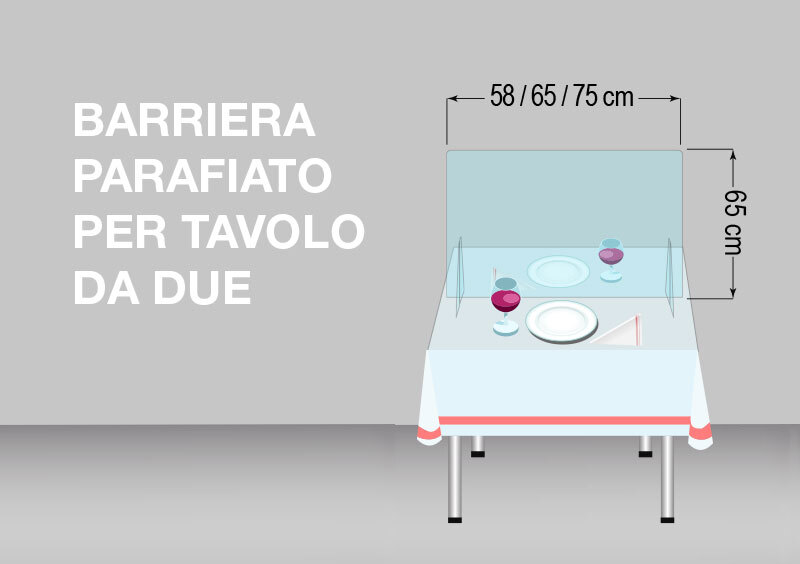 La Barriera di sicurezza è prodotta in Plexiglas® o policarbonato trasparente 2/3/4 mm. Si tratta di un pannello in polimetacrilato trasparente e infrangibile, più leggero e resistente del vetro e particolarmente adatto alla stampa.